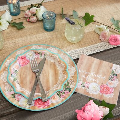 Burlap Lace 8 Inch Plates Napkins Bundle 12 Plates 25